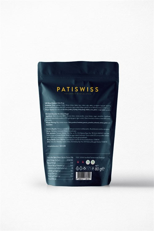 Bitter Çikolatalı %85 Kakao Çilek Draje, 80G